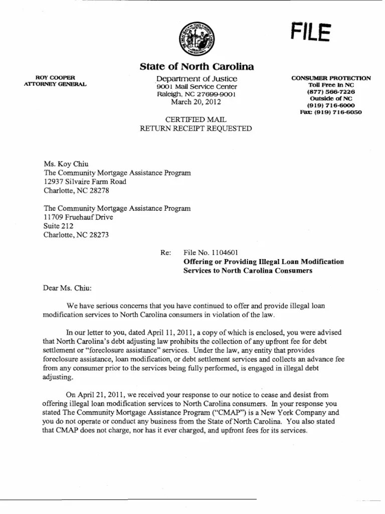 CMAP Cease & Desist Letter PDF Foreclosure Practice Of Law