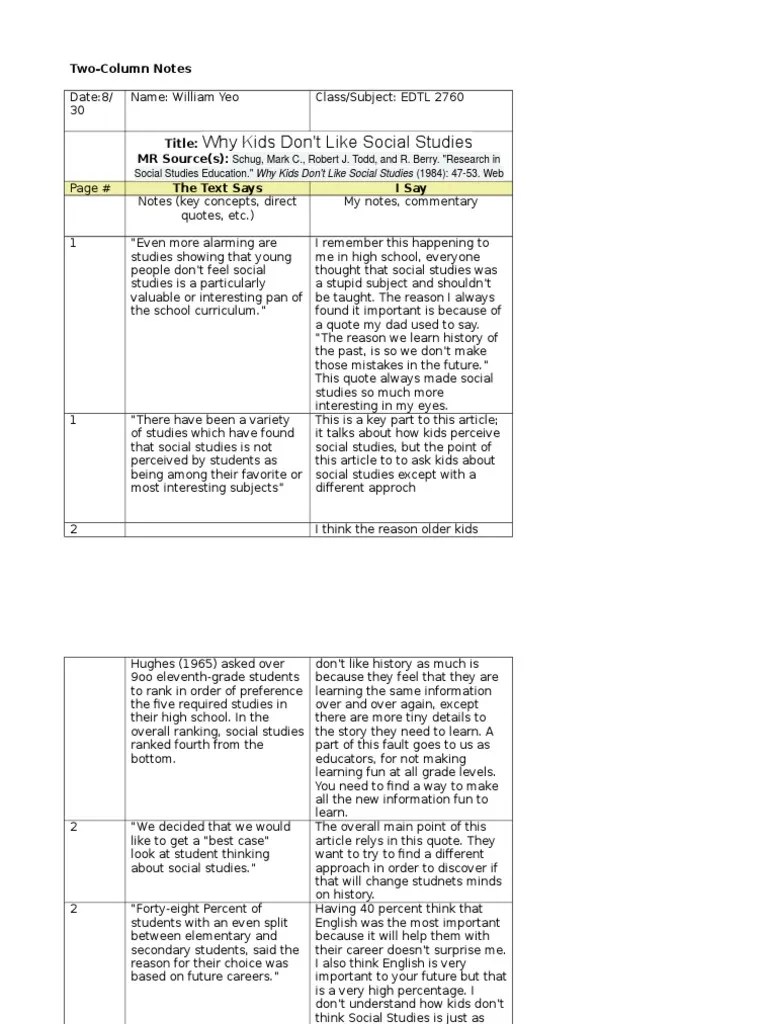 TwoColumn Notes Template1 1 PDF Students Cognition