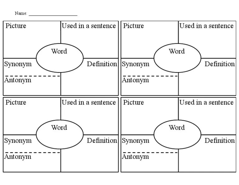 A four square handout for each word (or paper that can be divided into fours by the. Definition, image, word, and current event. This template helps you learn and remember vocabulary words by filling in four boxes: List of vocabulary words used for instruction; This product contains 1 sheet with four squares on it.