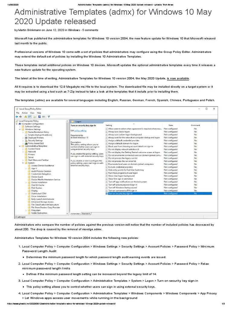 Administrative Templates (Admx) For Windows 10 May 2020 Update Released Ghacks Tech News PDF