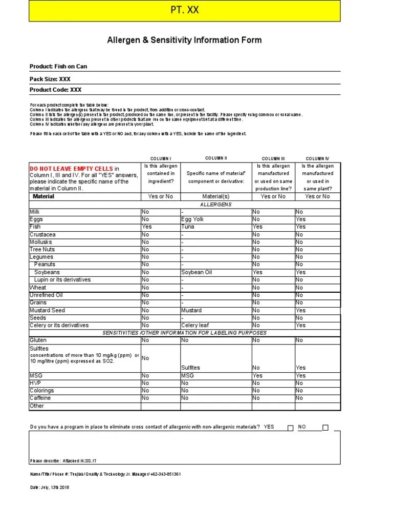 A food allergen policy demonstrates your commitment to reducing the risk of allergic. Learn how to create a food allergen policy for your business and download a free template. Nine major allergens to be aware of, including the recently added. This document provides a template for suppliers to identify any food allergens present in raw materials shipped to itc limited,.