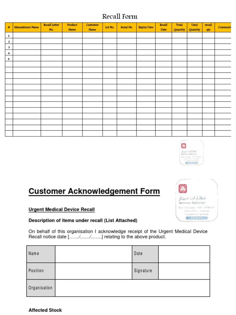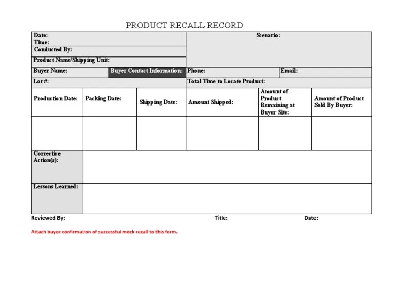 Internal Product Recall Request Template Word