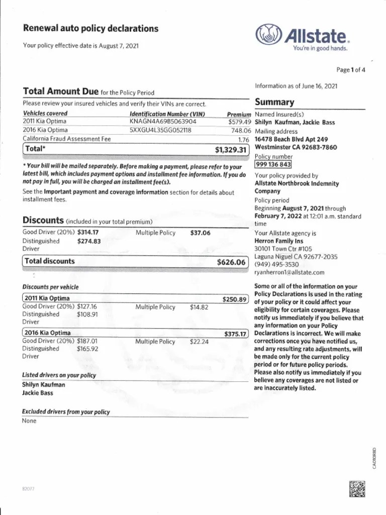 Allstate Declaration 20221110 0001 PDF Vehicle Insurance Insurance
