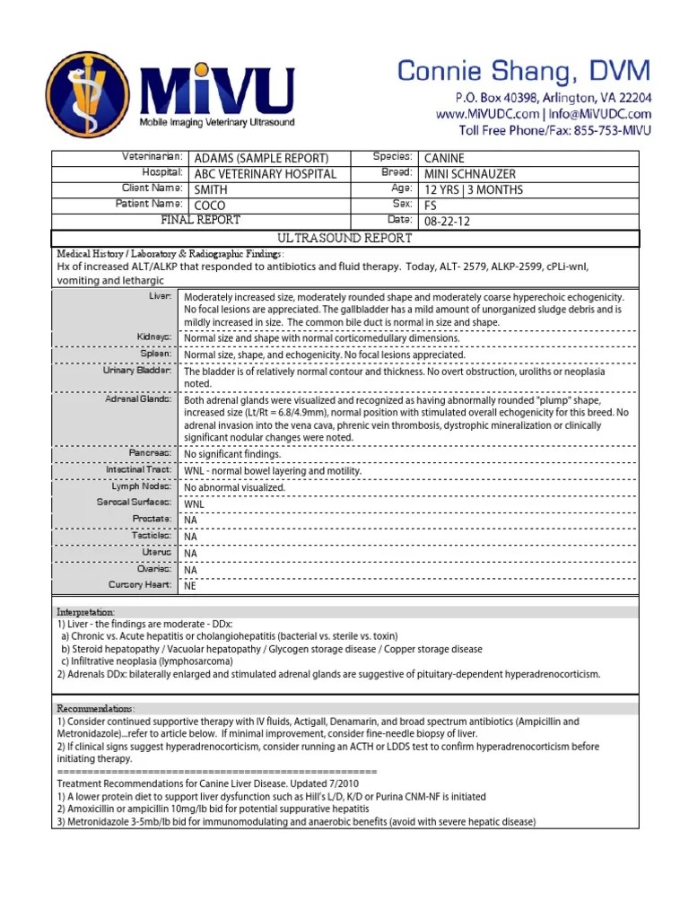 Sample Ultrasound Report Adrenocorticotropic Hormone Medical Specialties