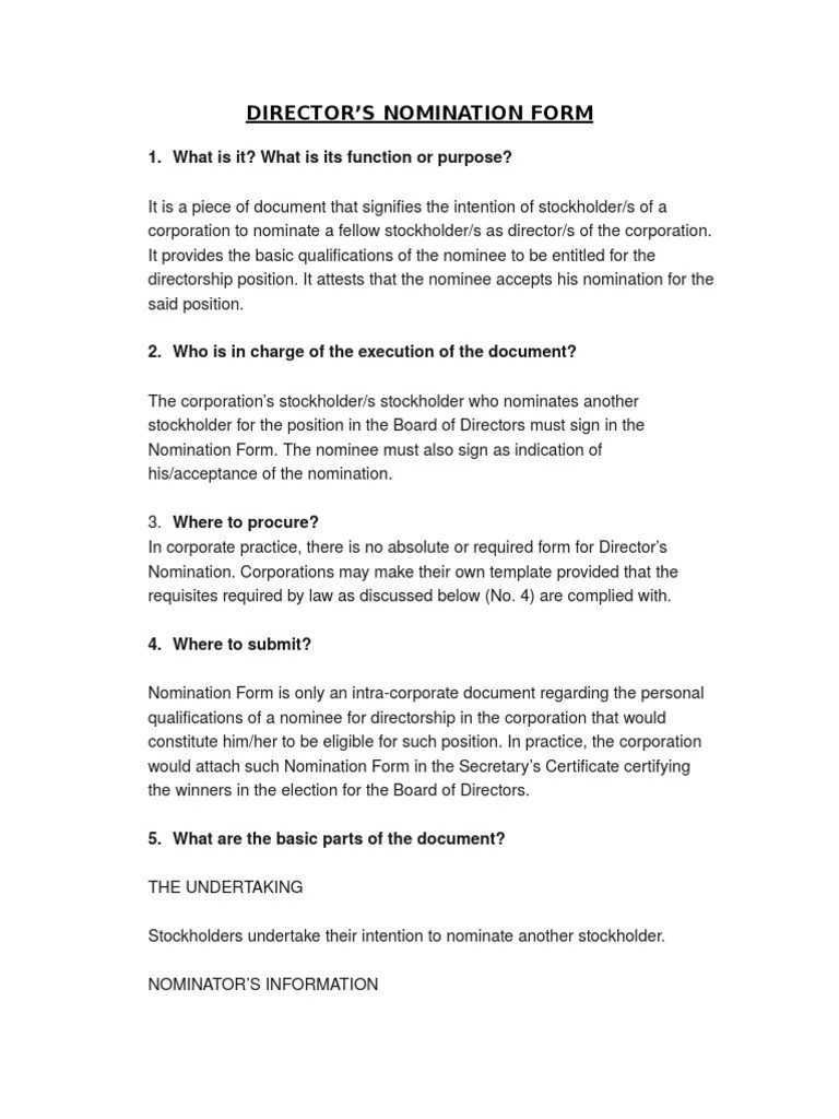 DIRECTOR’S NOMINATION FORM.docx Board Of Directors Corporations