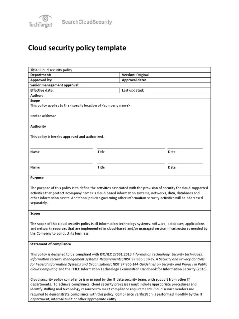 It helps define critical cloud assets that need to be secured,. In this guide, we’ll break down how to create a cloud security policy and provide a. Learn how to create an effective cloud security policy template with essential components, best practices, and strategic considerations. A cloud security policy template provides a structured approach and a customizable framework for managing cloud security.