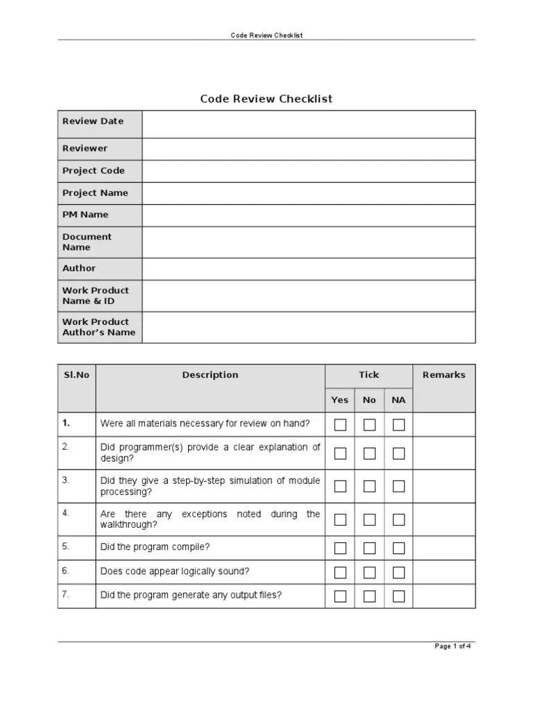 Our free template will help. This code review checklist is a comprehensive guide to help developers review code efficiently and effectively. Elevate the quality of your software development projects with the code review checklist template. Here’s a detailed code review checklist that can be adapted to your specific project or organization: The code review checklist provides a company guideline for.