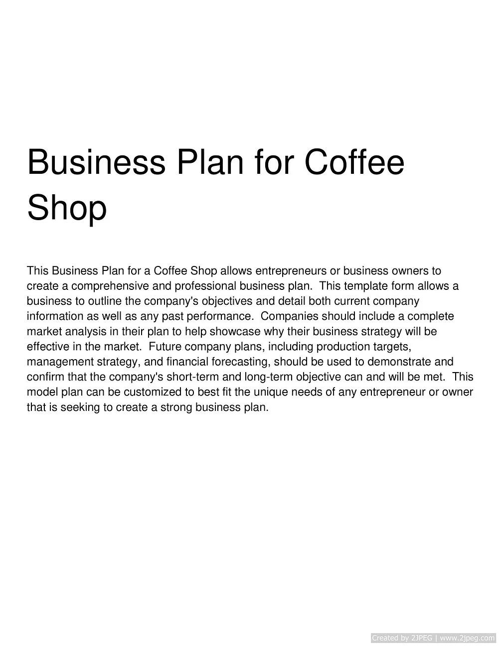 Are you about starting a coffee shop? In the opening to your executive summary you should give the basics. This comprehensive business plan for a coffee shop. Below, you'll find an example of a coffee shop business plan generated by our system. You’ll have an easy time creating your coffee shop/cafe business plan with our free download samples in word,.