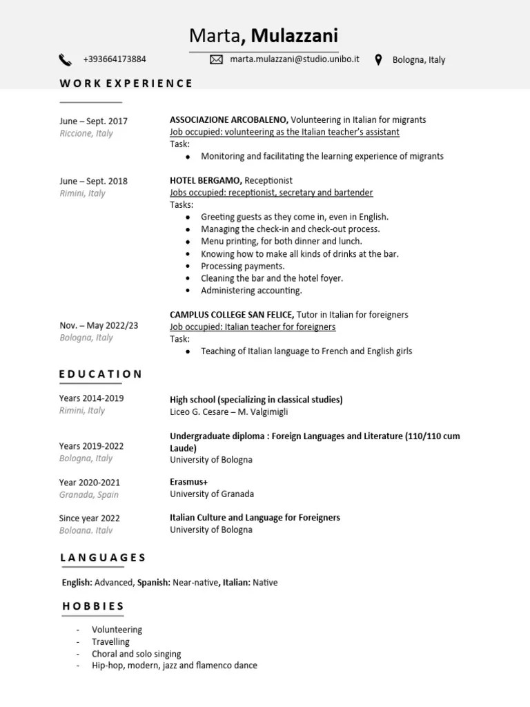 ️ modelo de currículum americano. Il nostro modello di cv americano word è stato creato dal nostro team di esperti di reclutamento e selezione. Our comprehensive template covers all sections. It lists an objective and work experience including dates, company names and job titles and descriptions. Looking for a model cv for the usa?