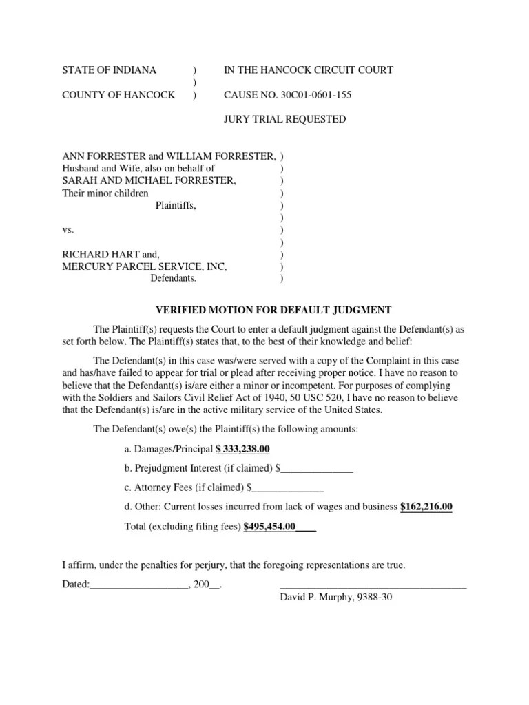 Motion For Default Judgment Template