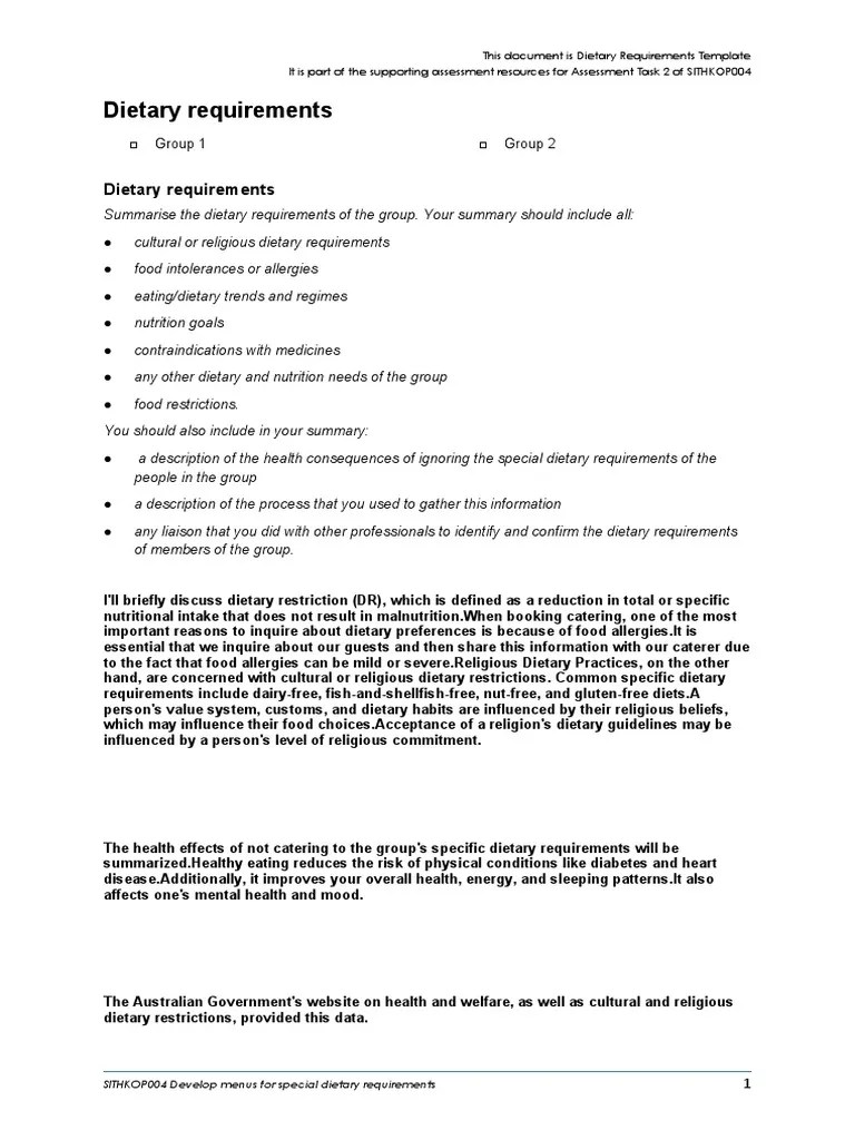 The Dietary Requirements Template Helps You Document Individuals' Dietary Requirements And.