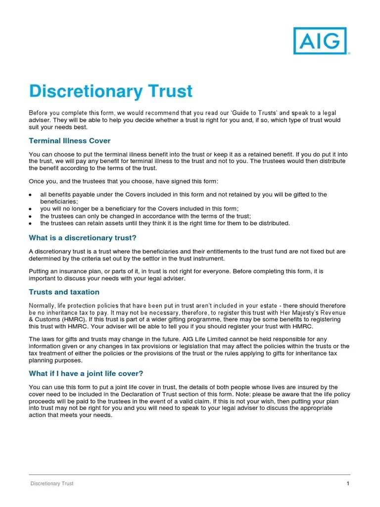 This free will template creates a discretionary trust of your entire estate, for your choice of beneficiaries. This trust deed template is suitable for a discretionary trust, where the trustee has full control over the assets of the trust and has no obligation to return the funds to the settlor and the. By executing this deed, the settlor creates a discretionary trust. The trustee of the trust is. The settlor desires to establish by this deed a trust to make certain provisions for the. Declaration of trust the settlor declares that the trustee shall and the trustee declares that. This trust deed template is suitable for a discretionary trust which is a trust conferring.