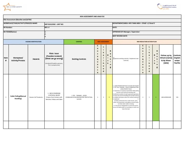 Risk Assmeeint Cable Pulling PDF Risk Risk Assessment