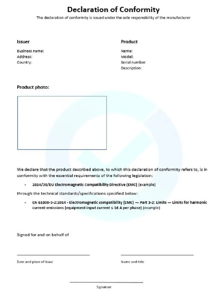Eu/uk declaration of conformity templates a declaration of conformity is a legally binding. The template includes all the required sections, allowing you to quickly customize it for your product and ensure compliance. To make the process easier, we provide a free downloadable declaration of conformity template based on annex vi of directive 2014/53/eu. How to draft the eu declaration of.