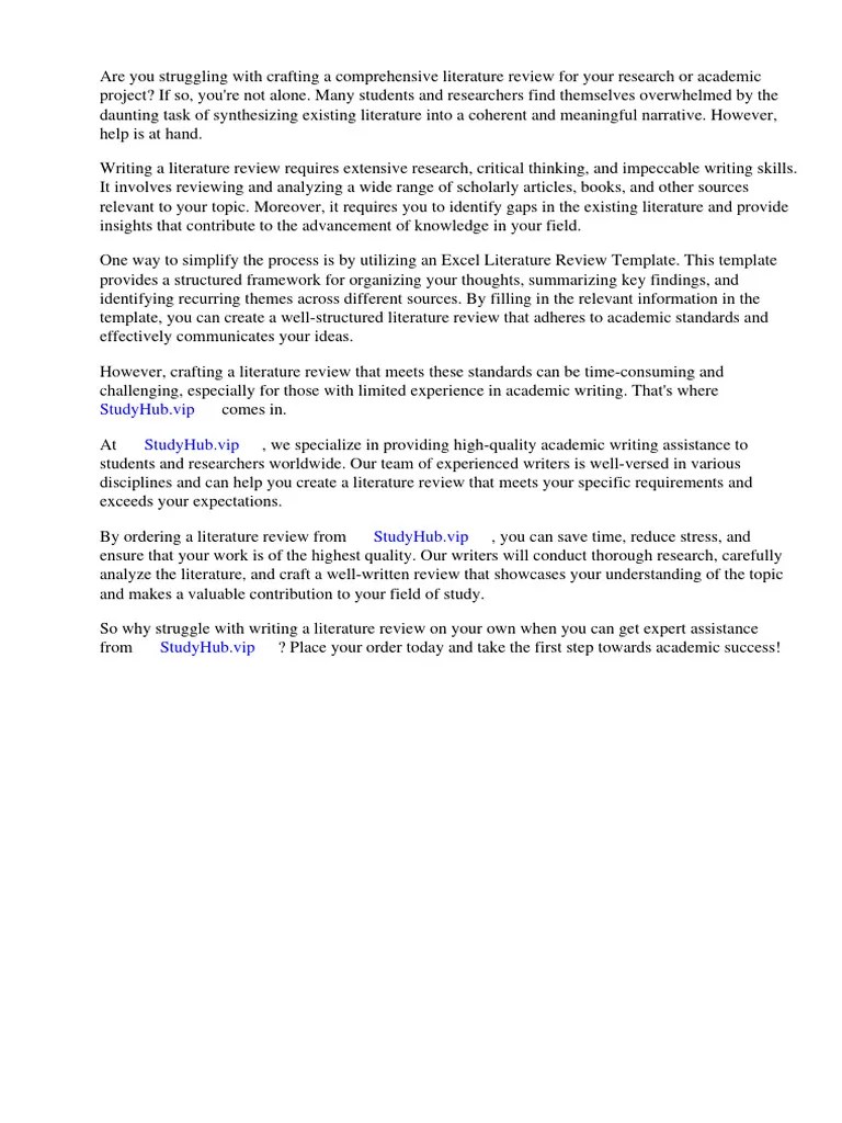 Excel Literature Review Template PDF Literature Review Systematic Review
