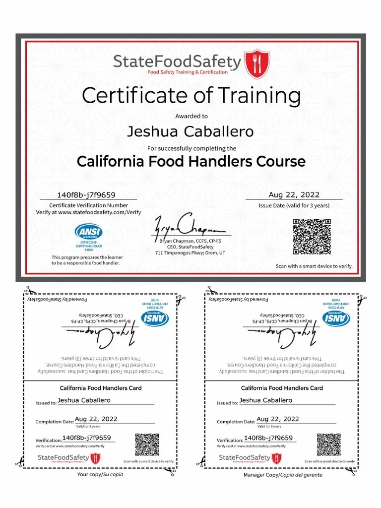 Customize and download this food handlers card. Food handlers card is in editable, printable. Free instantly download food handlers card template, sample & example in adobe illustrator, adobe photoshop, and microsoft word format. Train, test, and print your certificate! Individuals involved in the preparation, storage or service of food in food facility must possess a california food handler card.