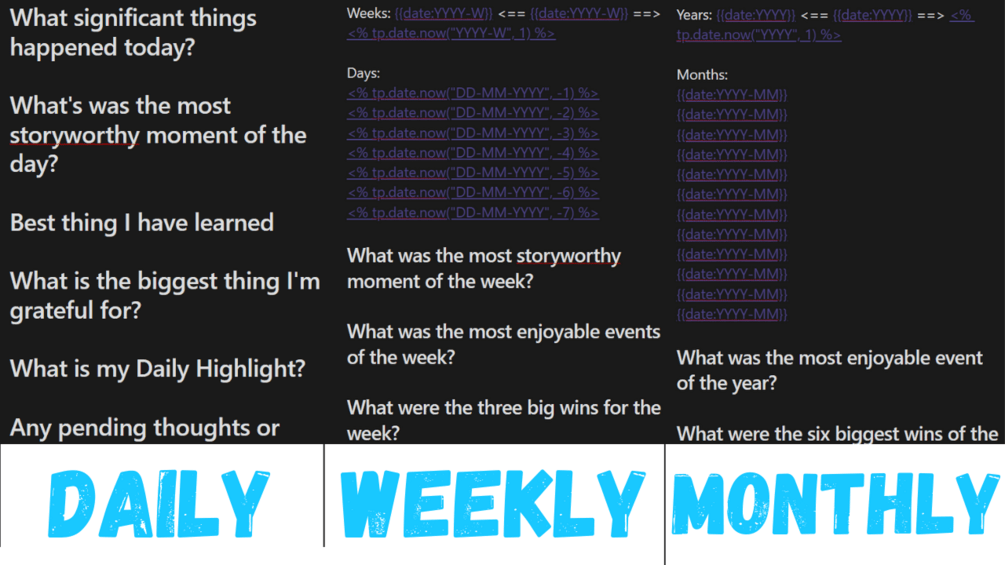 Obsidian Daily, Weekly, Monthly, and Yearly Templates