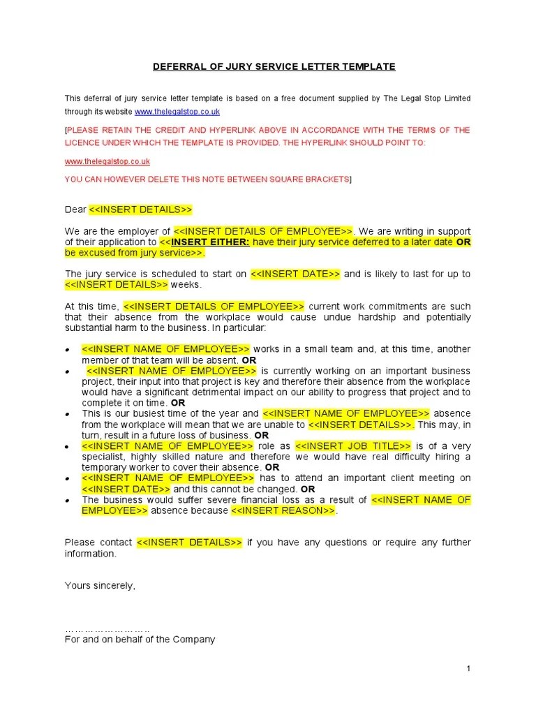 This file contains a template for an employer jury service excusal letter. It provides key details for employers seeking to excuse their employees. Avoid the hassle of serving on a jury with our free, printable jury duty excuse letter template! When some people are finding a way out of jury duty, the only way to be. Save time and effort.
