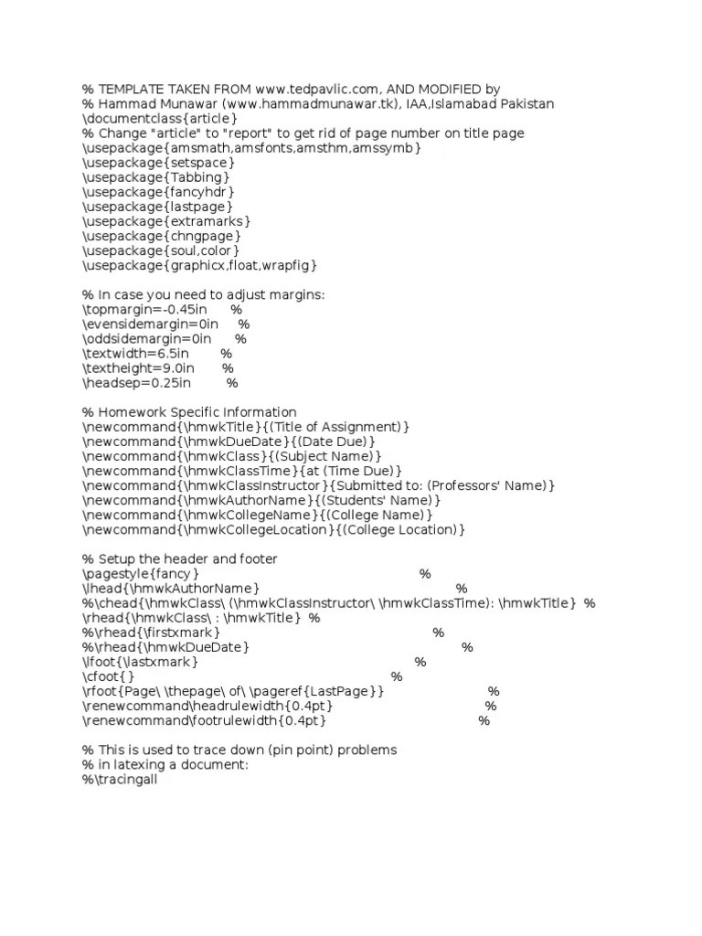 I found it online and used it as a base to start my template. I would like if there. To use it, just download the homework.tex file and start editing. Handy latex templates for homework assignments to use at school, college, and. Here are just a few features of this homework template.