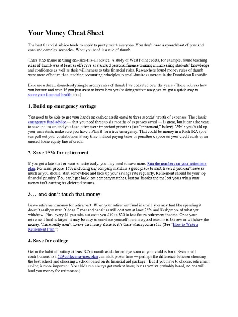 Your Money Cheat Sheet Download Free PDF Mortgage Loan Debt