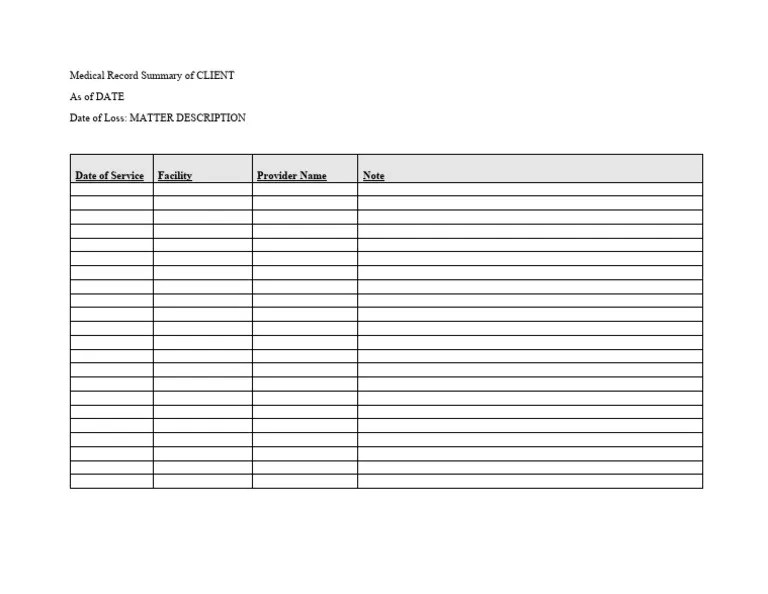 Medical Records Summary Template