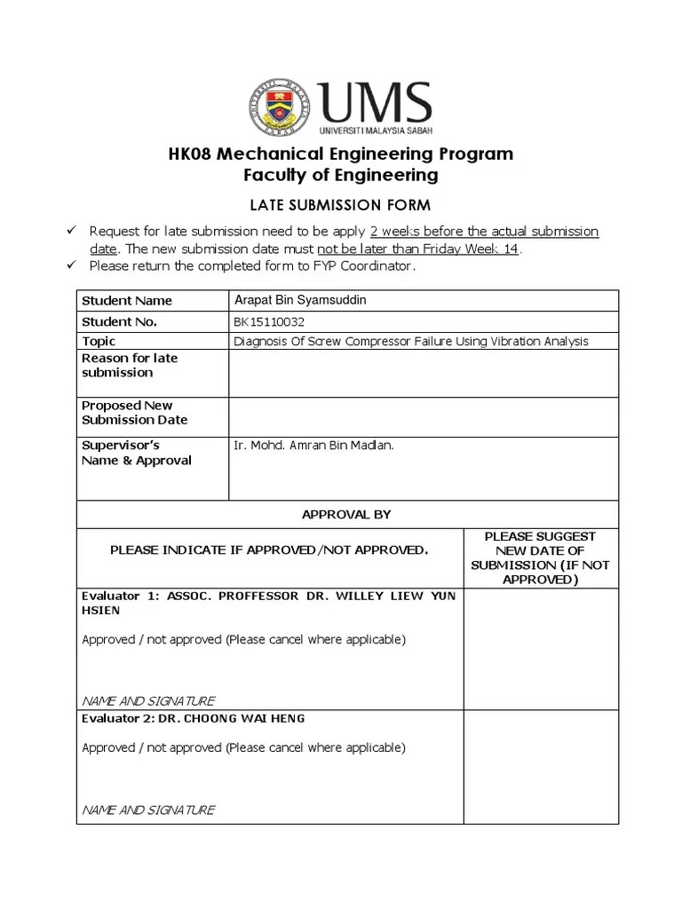HK08 Mechanical Engineering Program Faculty of Engineering Late Submission Form PDF