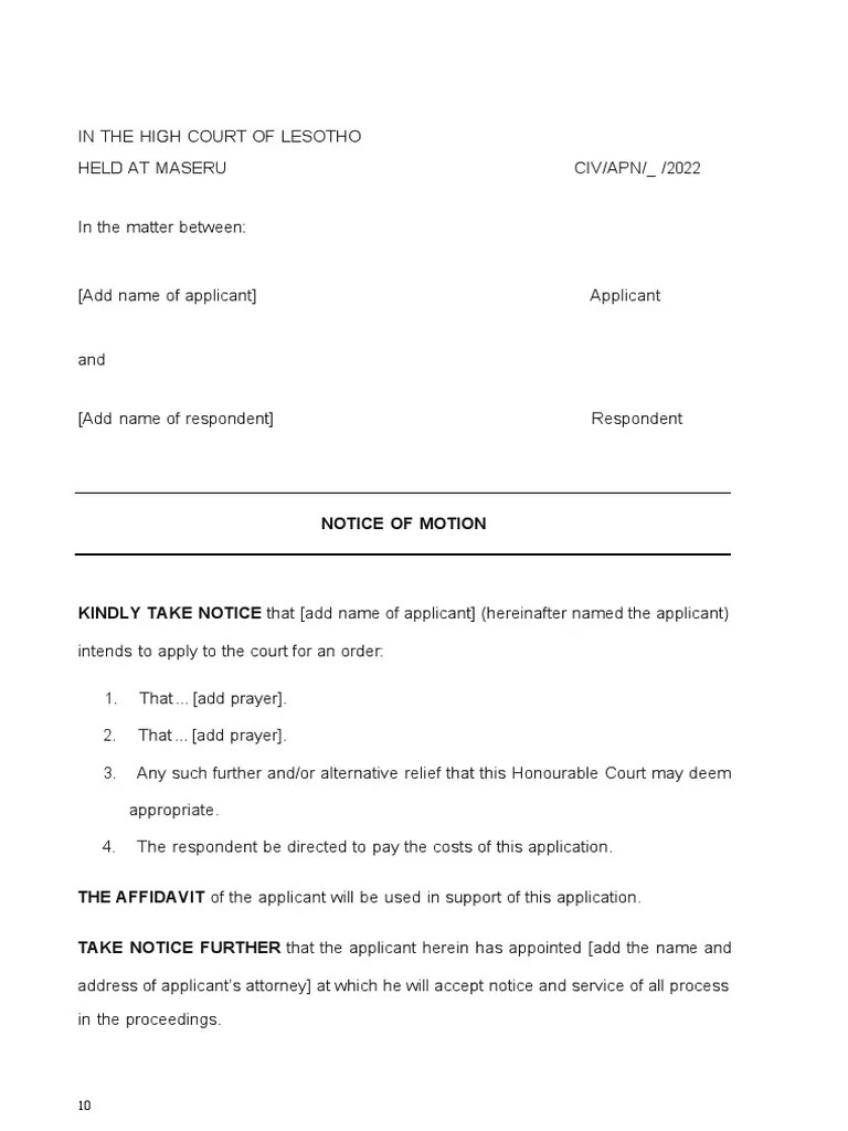 Notice Of Motion Template