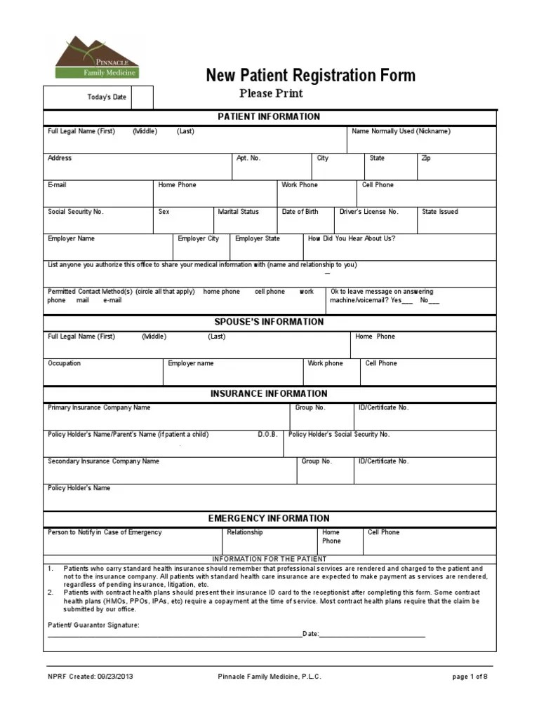44 New Patient Registration Form Templates Printable Templates
