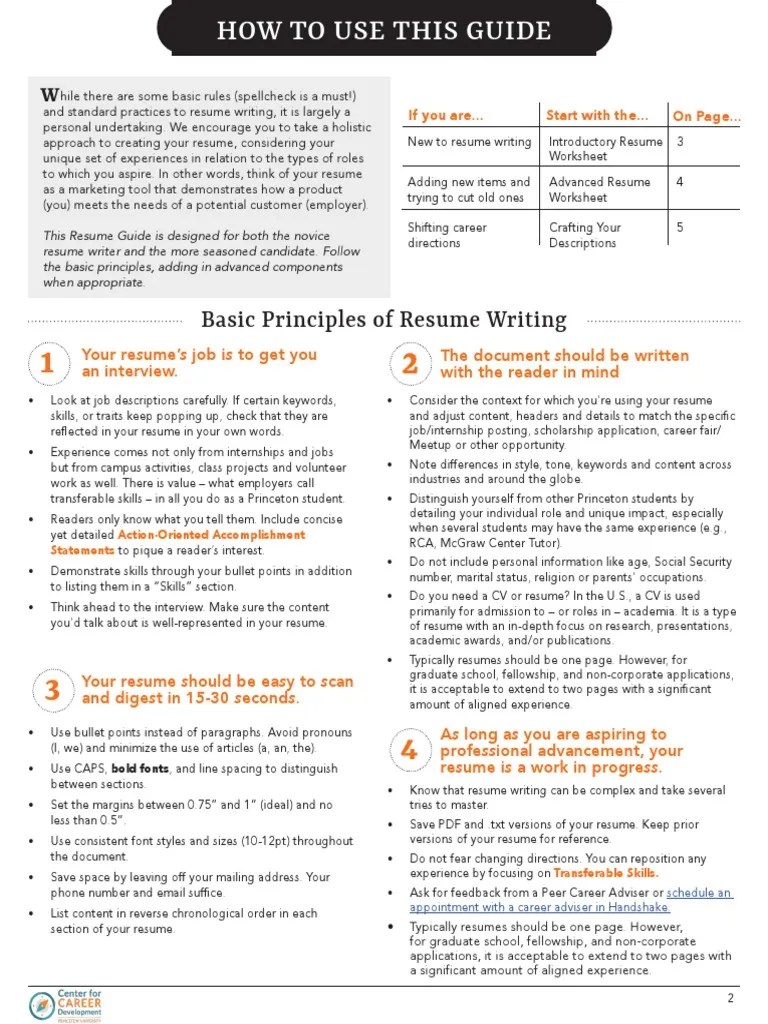 ResumeGuidePrincetonUniversity PDF Résumé Princeton University