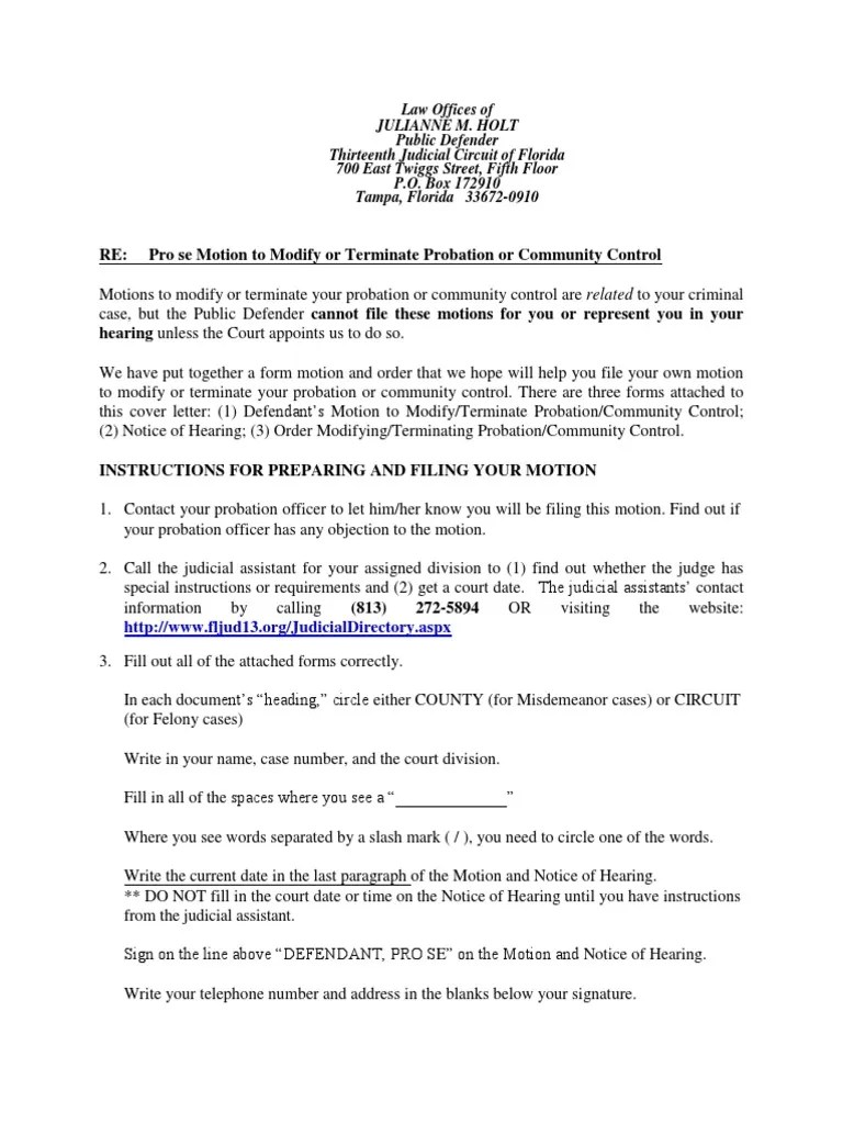 Pro Se Motion To Modify or Terminate Probation or Community Control English 20151027 PDF Pro