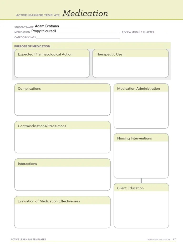 Propylthiouracil Medication ACTIVE LEARNING TEMPLATES THERAPEUTIC PROCEDURE A Medication