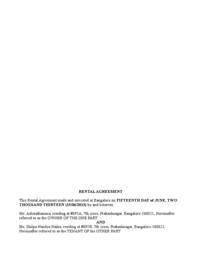 You can easily create your rent agreement in bangalore online. Our format incorporates the relevant. Need rent agreement in bangalore. A rental agreement, also called a rent deed and lease deed, contains basic details of the residential property, the owner of the property, the renter (or tenant, as he is also called), the term of the rental period, and the.