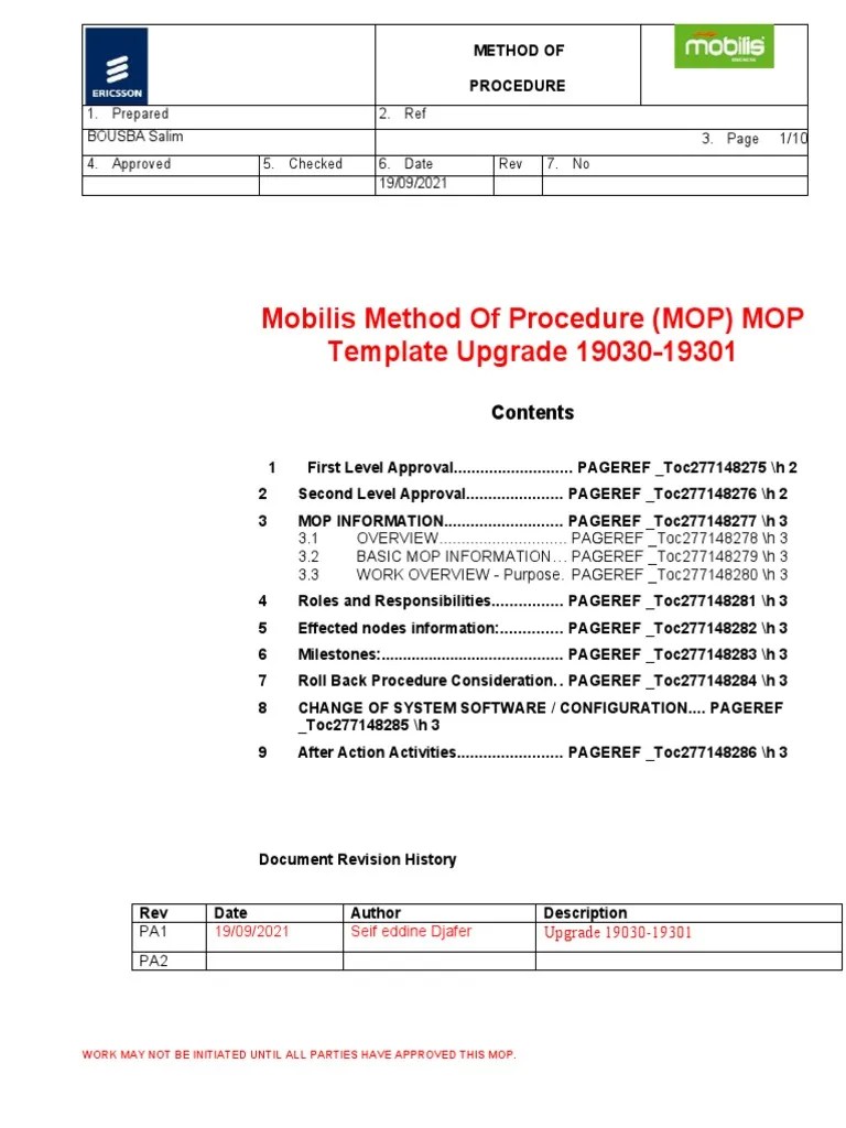 Mobilis Method of Procedure (MOP) MOP Template Upgrade 1903019301 PDF Information Age