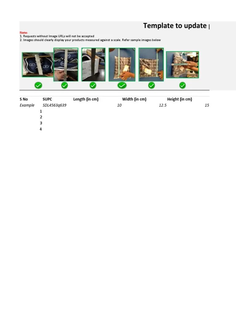 Template To Update Product Dimensions Sno Supc Length (In CM) Width (In CM) Height (In CM) PDF