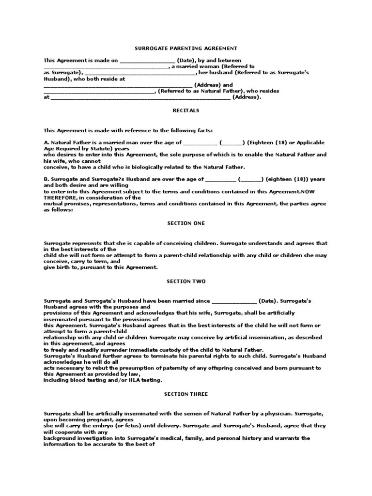 Surrogate Parenting Agreement PDF Surrogacy Human Reproduction