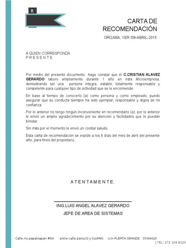 Carta de personal Cartas de Formato de carta, Carta de referencia