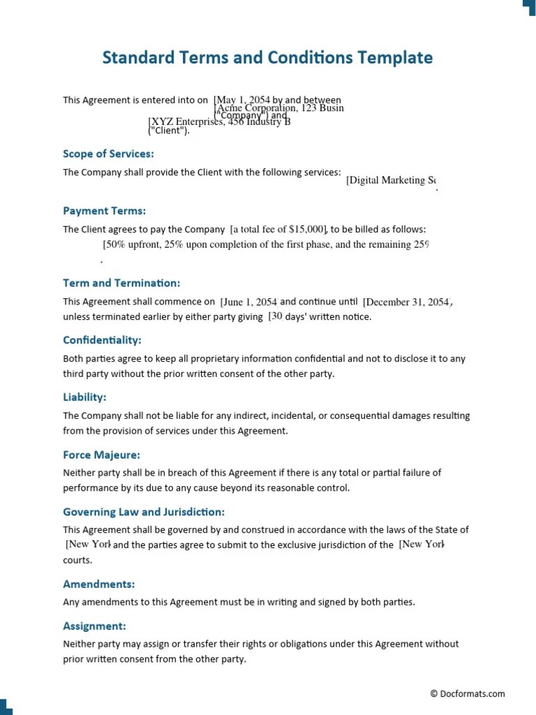 Terms and conditions set the guidelines that each party involved in the transaction will abide by the rules during their interaction. Download for word (.doc) or adobe (.pdf). If you want an easy start, use our free terms and conditions templates in microsoft word (doc), which you can get for free here at template.net. Download a free terms and conditions.