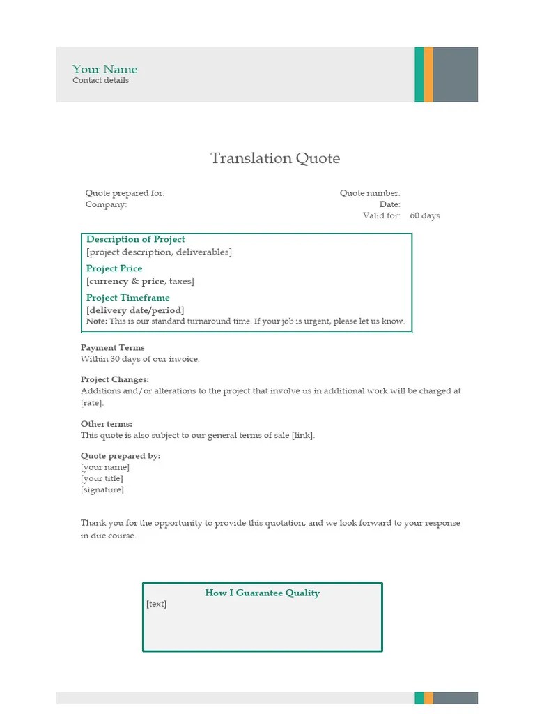 Download Translation Quote Template And Other Quote Templates In Word, Excel, Pdf, Google Docs And Sheets.