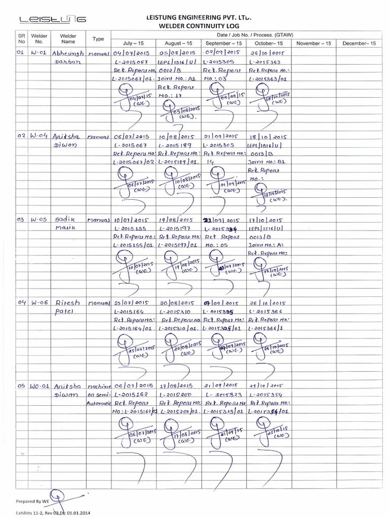 Sign it in a few clicks. Send welding continuity log examples via email, link, or fax. The welder continuity log is a vital document designed to record welding activities. The excel file is similar to what you get when you export the weld log in weldtrace. Edit your welder continuity log template online.
